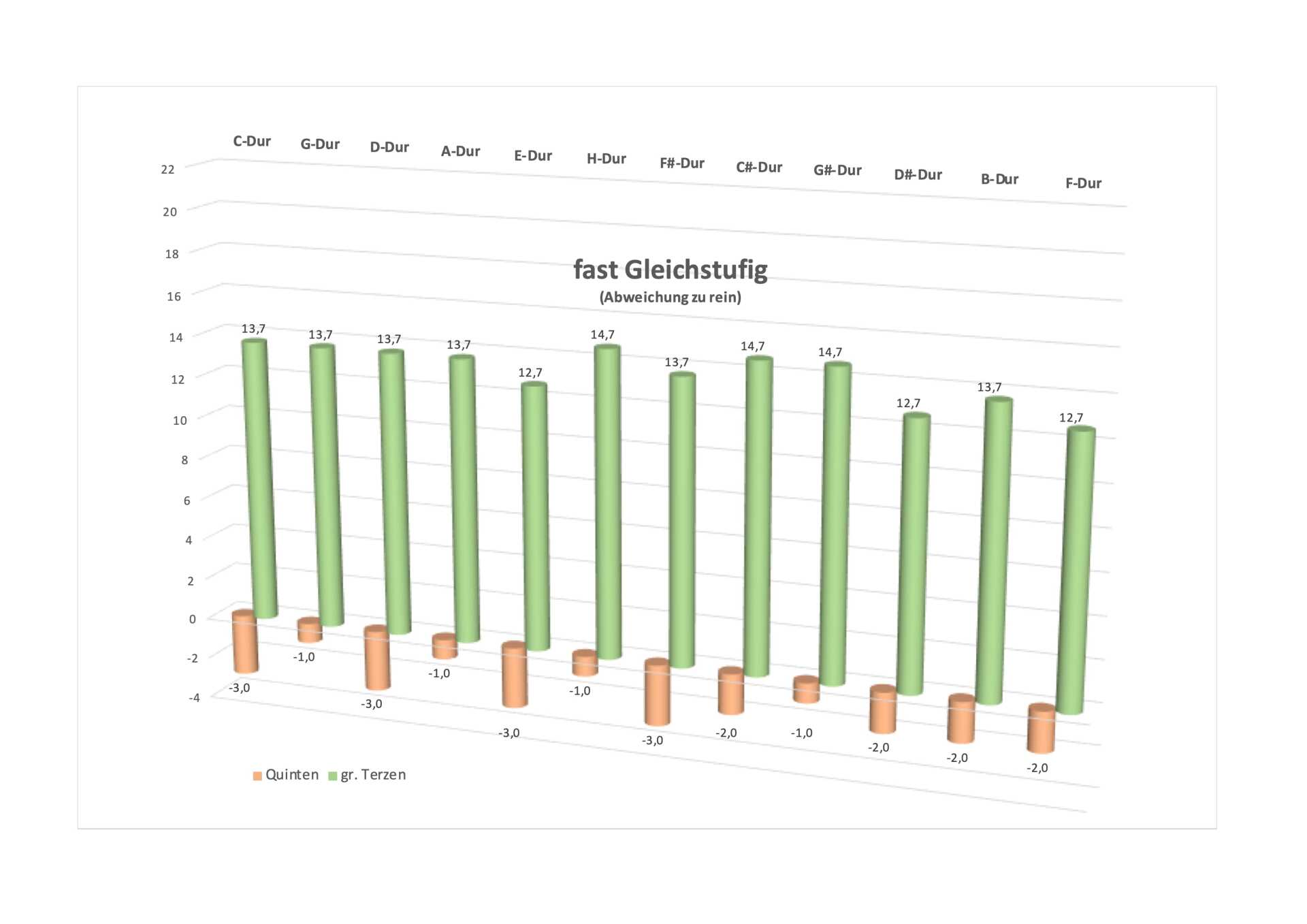 Die Graphiken zeigen die Eignung der jeweiligen Stimmung für verschiedene Akkorde und Tonarten.
